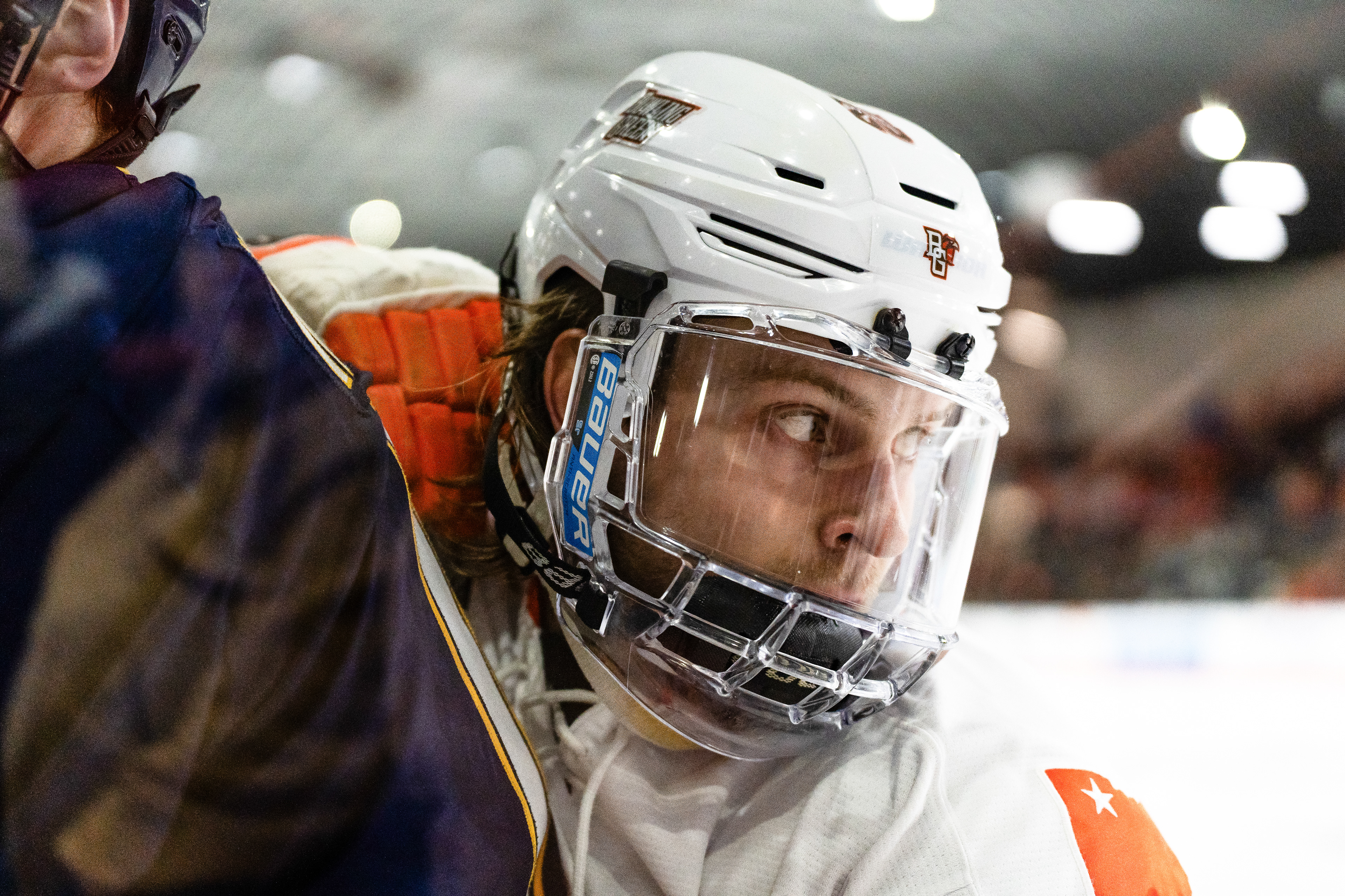 BOWLING GREEN, OH – Falcons senior linebacker Gideon ESPN Lampron (4) runs off the field in elation after defeating the Rockets in the Battle of I-75 at Doyt L. Perry Stadium in Bowling Green, Ohio.
